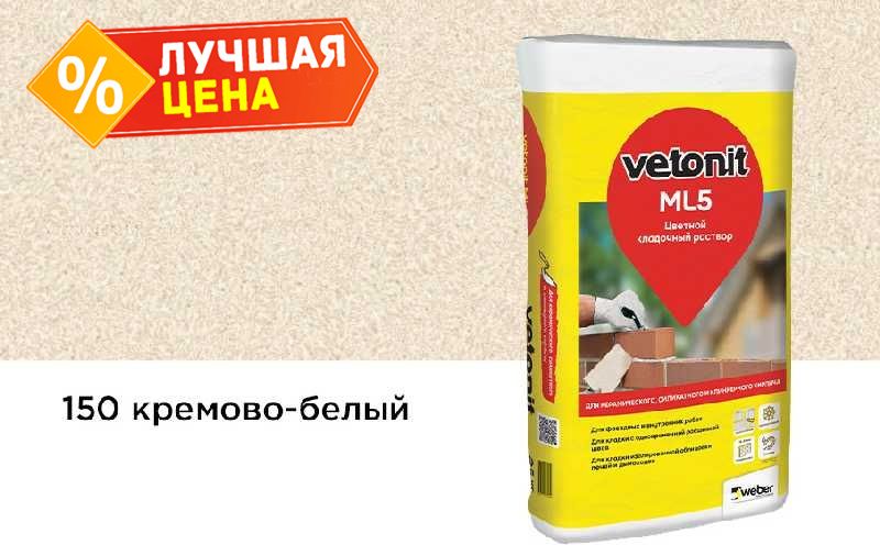 Цветной раствор weber.vetonit МЛ5 зимний (weber.vetonit ML 5 winter) №153 Марес, бежевый, предназначен для достижения оттенка шва, подходящего к цвету кирпичной кладки.